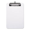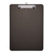 Plastic Clipboard with Low Profile Clip, 0.5" Clip Capacity, Holds 8.5 x 11 Sheets, Translucent Black. Shatter-resistant plastic construction ensures durable performance in the most demanding environments. SAE and metric rulers on either edge of the clipboard provide added convenience and improved functionality. Low-profile safety clip eliminates the possibility of accidental openings, while making the clipboard easier to store in briefcases, file cabinets, laptop bags and more. Holds Paper Size: 8 1/2 x 11; Clipboard Actual Size: 9w x 12 1/2h; Clipboard Material: Plastic; Clip Capacity: 1/2".
