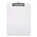 Plastic Clipboard with Low Profile Clip, 0.5" Clip Capacity, Holds 8.5 x 11 Sheets, Clear. Shatter-resistant plastic construction ensures durable performance in the most demanding environments. SAE and metric rulers on either edge of the clipboard provide added convenience and improved functionality. Low-profile safety clip eliminates the possibility of accidental openings, while making the clipboard easier to store in briefcases, file cabinets, laptop bags and more. Holds Paper Size: 8 1/2 x 11; Clipboard Actual Size: 9w x 12 1/2h; Clipboard Material: Plastic; Clip Capacity: 1/2".