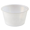 Portion Cups, 2oz, Black, 250/Sleeve, 10 Sleeves/Carton. Ramekin-design portion cups allow you to elegantly present condiments and sauces with your to-go and carry-out orders. Thick polystyrene eliminates the potential for flavor and odor transfer. Smooth-rolled rims simplify dipping and pouring. Recessed, easy-stack lids (sold separately). Cup Type: Portion; Capacity (Volume): 2.000 oz; Material(s): Polystyrene; Color(s): Black.