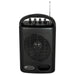 Power Pod PA, 50 W, Black. This PA system packs 50 watts of power into a unit weighing less than six pounds, reaching an audience size of 300 people with crystal clear sound. The wireless microphone has a range that allows the presenter to stand up to 100 feet away from the PA system while speaking. Built-in single channel VHF receiver in the unit allows for only one wireless microphone to be used at a time. An optional wired microphone can be plugged into the Power Pod PA to allow for dual presenters, with one presenter speaking from the wired microphone and the second presenter speaking from the wireless microphone. Loaded with a media player that gives you the ability to play recorded audio from a SD card or a USB thumb drive and includes FM radio with remote control. You can even record a presenter’s speech that is spoken into the microphone onto the thumb drive. The media player and FM radio is accessible by either using the control panel on the unit or the remote control. The unit runs up to eight hours off its internal rechargeable battery. A full set of controls include wired mic input with wired microphone volume, wireless microphone volume, wireless antenna, echo effect, auxiliary volume, tone control, MP3/FM volume and recharging connect. Number of Mic Inputs: 1; Speaker Type: 6.5" Full Range Speaker; Number of Speakers: 1; Additional Features: 120 V ac Power Cord; Bluetooth Plug-In Receiver; FM Radio; Headset Microphone; Lapel Microphone; Media Player with USB/SD Inputs with Recording Capabilities; Remote Control; Wall Charger with USB Connection and 3.5 mm Charging Cable; Wireless Handheld Microphone.