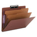 Pressboard Classification Folders with SafeSHIELD Coated Fasteners, 1/3-Cut, 2 Dividers, Letter Size, Red, 10/Box. The ultimate classification folder when safety and security are most important. SafeSHIELD® bonded fasteners add protection for papers and fingers, while also reducing fastener crinkling. Heavy-duty classification folders make ideal project files. Sturdy tear resistant gusset expands to hold either 2" or 3" of material. Made of pressboard for extra durability. This product was made using wood sourced from a certified managed forest. 1/3 Cut Assorted Position Metal Tabs on Cover—Flat metal tab. Folder Size: Letter; Total Number of Dividers: 2; Total Number of Fasteners: 6; Max Folder Expansion: 2".