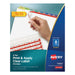 Print and Apply Index Maker Clear Label Dividers, 8 Color Tabs, Letter, 25 Sets. Organization is made easy with Index Maker® Dividers. Whether you're coordinating a single project or multiple binder sets, these dividers let you to get it done quickly and easily, with professional results. The clear labels virtually disappear on the tabs, giving your dividers a clean, printed-on look. Save time with the Easy Apply™ strip that lets you label all the tabs at once, making it simple to create custom dividers right from your desktop. Just use the free templates from Avery Design & Print and you can personalize and print your Easy Apply™ tab labels in minutes. With these dividers you get a professional, easy-to-use solution to keep all your projects organized. For laser and inkjet printers. Contemporary Color Tabs. Index Divider Style: Customizable; Index Divider Size: 11 x 8.5; Punched/Unpunched: 3-Hole Punched; For Use With: Ring Binders.