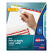 Print and Apply Index Maker Clear Label Dividers, 8 Color Tabs, Letter, 5 Sets. Organization is made easy with Index Maker® Dividers. Whether you're coordinating a single project or multiple binder sets, these dividers let you to get it done quickly and easily, with professional results. The clear labels virtually disappear on the tabs, giving your dividers a clean, printed-on look. Save time with the Easy Apply™ strip that lets you label all the tabs at once, making it simple to create custom dividers right from your desktop. Just use the free templates from Avery Design & Print and you can personalize and print your Easy Apply™ tab labels in minutes. With these dividers you get a professional, easy-to-use solution to keep all your projects organized. For laser and inkjet printers. Contemporary Color Tabs. Index Divider Style: Customizable; Index Divider Size: 11 x 8.5; Punched/Unpunched: 3-Hole Punched; For Use With: Ring Binders.