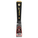 Putty Knife, 1 1/2" Wide, Steel, Stiff. Lacquer-coated high-carbon steel blade is constructed for durability and longevity. Precision-ground bevel edge. Brass-plated steel head can be used for setting drywall nails and other hammering jobs. Comfort-grip nylon handle is solvent-resistant. Convenient hanger hole in handle. Stiff putty knife. Blade Width: 1 1/2"; Blade Material: Steel; Handle Material: Nylon; Handle Color: Black.
