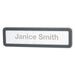Recycled Cubicle Nameplate with Rounded Corners, 9 x 2.5, Charcoal. Use for individual or department name. Firmly attaches to cubicle panels, walls or metal surfaces. Maximize your work space by using on cubicle or vertical surface. Made from high impact plastic. Nameplates Type: Cubicle; Width: 9"; Height: 2.5"; Corner/Edge Style: Rounded Corner.
