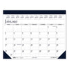 Recycled Two-Color Refillable Monthly Desk Pad Calendar, 22 x 18, 2020. Subtle, deep blue and gray printing is soothing and easy on the eyes. Full-year reference calendar aids in planning throughout the year. Lightly ruled daily blocks help keep notations neat. Julian dates with days remaining. Made entirely of recycled materials. Deluxe Desk Pad—Padded header for an executive look. Size: 22 x 18; Page Color/Theme: Blue/Gray; Edition Year: 2020; Calendar Term: 12-Month (Jan.-Dec.).