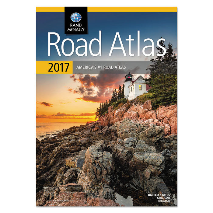 Road Atlas, North America+Puerto Rico, Soft Cover, 2017. Updated North American atlas contains maps of every U.S. state, every Canadian province, an overview map of Mexico and detailed inset maps of over 350 cities and 20 U.S. national parks. Highlighted road construction projects and updates are located conveniently above each map. Mileage chart shows distances and driving times between 90 North American cities and national parks. Paperback. Reference Book Type: Atlas; Number of Pages: 144 pages; Binding: Softcover; Width: 10 7/8".