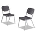 Rough n Ready Stack Chair, Supports Up to 500 lb, Black Seat/Back, Silver Base, 4/Carton. Perfect for any inside or outside application. Extra-wide seat and back are contoured for ergonomic comfort and resist dents and scratches. Tough and extremely durable, yet lightweight and easy to transport and store. These chairs will look "Good as new," for years to come. Chairs stack 12 high for compact storage. Easily wipes clean. Heavy-gauge steel tubing construction provides extreme durability. Non-mar feet protect floors. Recommended Applications: Breakroom & Hospitality; Seat Color: Black; Back Color: Black; Color Family: Black.