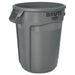 Round Brute Container, Plastic, 32 gal, Gray. Sets the standard for reliable garbage collection in high traffic areas. Built tough and versatile, these garbage cans feature revolutionary venting channels that let air flow into the receptacle making liners up to 50% easier to remove. Integrated cinches allow bags to be attached to handles without knots for faster liner changes while contoured base handles and rounded top handles make it easier for staff to lift and transport these receptacles in any facility. Constructed of the high-quality materials, these crush-resistant garbage cans have heavy-duty, reinforced bases that hold up even when dragged across rough surfaces. These trash cans are stackable to save space and provide an unbeatable value with their easy-to-clean, seamless construction, UV inhibitor, and do not fade, warp, crack, or crush. Waste Receptacle Type: Indoor All-Purpose Waste Bin; Material(s): Plastic; Application: Indoor All-Purpose Waste Disposal; Capacity (Volume): 32 gal.