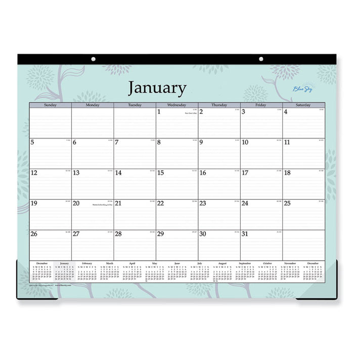 Rue Du Flore Desk Pad, 22 x 17, 2020. Manage busy schedules by jotting down appointments, reminders and more on this stylish monthly desk pad. Design adds a touch of style while still offering ample writing space with clean white calendar grid. Thick, premium pages reduce ink bleed-through. Easy-to-tear perforated monthly pages. Clear corners keep pages flat. Printed on acid-free paper with soy-based ink. Mix and match with other planning products from Blue Sky to organize your daily life. Size: 22 x 17; Page Color/Theme: Rue du Flore; Appointment Ruling: None; Edition Year: 2020.