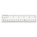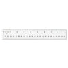 Clear Flexible Acrylic Ruler, Standard/Metric, 12" Long, Clear. Ideal for home, school and office. Accurately scaled in 1/16" on one side and millimeters on the other. Ends have extra margins for clear starts and stops and plumb lines to aid in checking right angles. Raised beveled edges. Hang-up hole. Ruler Type: Standard/Metric; Length: 12"; Standard Scale: 1/16"; Metric Scale: Millimeters.Transparent to allow for easy viewing to the page.Accurately scaled in 1/16" on one side and millimeters on the other.Features raised beveled edges to eliminate smearing.Extra margins at the ends for clear starts and stops.Plumb lines at ends aid in drawing or checking right angles.Hang-up hole.Suitable for use in the home, school, shop or office.Numerals and graduations are sharply delineated.Scratch-resistant ruler.Ruler comes in a vinyl pouch.