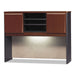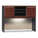 Series A Collection 48W Hutch, Hansen Cherry/Galaxy. Series A Collection Hutch for open leg table design provides flexible solutions. This convenient Hutch clears up your desk with concealed storage. Includes two doors with self-closing, Euro-style hinges for a soft close. Mounts onto Desk or 2-Drawer Lateral File for increased storage. Accepts a Task Light (sold separately) above the fabric covered Tackboard. Keep cables hidden with integrated wire management grommets. Color: Hansen Cherry/Galaxy; Color Family: Cherry; Overall Width: 47.63"; Overall Depth: 13.88".