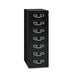 Seven-Drawer Multimedia/Card File Cabinet, Black, 19.13" x 28.5" x 52". 38,100 card capacity. For tab cards, mag cards, video cassettes and CDs. Durable steel construction ensures strength and stability. One lock secures all drawers. Center divider and two follower blocks per drawer. Color: Black; Color Family: Black; Overall Width: 19.13"; Overall Depth: 28.5".