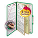Six-Section Pressboard Top Tab Classification Folders with SafeSHIELD Fasteners, 2 Dividers, Legal Size, Green, 10/Box