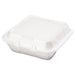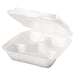 Foam Hinged Carryout Container, 3-Compartment, 8-4/9x7-5/8x2-3/8, White, 100/BagSnap It™ together and send to-go out properly.