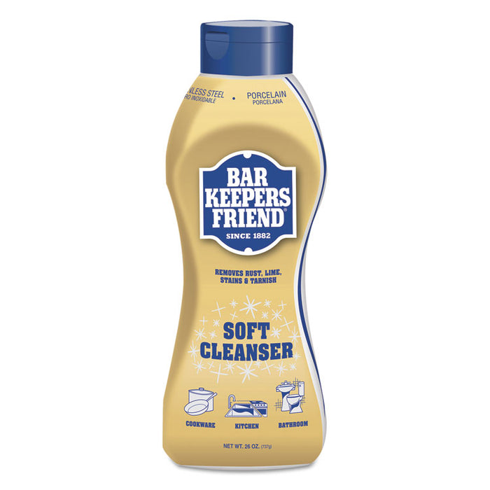 Soft Cleanser, 26 oz Squeeze Bottle, Citrus, 6/Carton. Cream cleanser non-bleach formula clings, cleans and deodorizes without scratching or dulling most hard non-stone surfaces. Non-bleach formula better for stainless steel, tile, porcelain, ceramic, fiberglass, chrome, copper, brass and more. Removes lime, rust, stains, soap scum, tarnish and oxidation. Application: Cleaning Services; Metal Fabricators; Marinas; Schools; Health Care; Government Facilities; Applicable Material: Stainless Steel; Ceramic; Porcelain; Corian; Fiberglass; Copper; Brass; Acrylic; Chrome; Tile; Grout; Chemical Compound: Oxalic Acid; Dirt Types: Lime; Mineral Scale; Rust; Soil; Stains; Grease; Tarnish; Oxidation; Calcium.