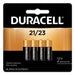 Specialty Alkaline Batteries, 21/23, 12 V, 4/Pack. Duracell® Specialty Alkaline batteries have a five-year guarantee in storage, so you can be confident these batteries will be ready when you need them. They offer long-lasting power for your specialty devices. Specialty Battery. Battery Type: Alkaline; Battery Size: 21/23; For Use With: Everyday Electronic Devices; Voltage: 12 V.