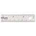 Stainless Steel Office Ruler With Non Slip Cork Base, 6". Nearly indestructible, warp-free, bend-resistant stainless steel ruler is ideal for precision tasks. Nonslip cork backing helps ensure precise measurements. Attractive, bright and tasteful, metallic finish fits right into modern office environments. Etched, bright white standard and metric markings deliver easy readability. First and last inches feature 1/32" gradations. Drilled hook hole on one end for convenient tool-board storage. Ruler Type: Standard/Metric; Length: 6"; Standard Scale: 1/16"; 1/32"; Metric Scale: Centimeters; Millimeters.