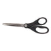 Stainless Steel Office Scissors, Pointed Tip, 7" Long, 3" Cut Length, Black Straight Handle
