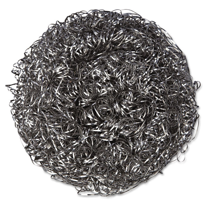 Stainless Steel Scrubbers, Large, 4 x 4, Steel Gray, 12 Scrubbers/Pack, 6 Packs/Carton. High-quality stainless steel construction. Equipped to handle a variety of scouring jobs. Large Size. Scouring Pads/Sticks Type: Stainless Steel Scrubber; Material(s): Stainless Steel; Size (W x L): 4" x 4"; Color(s): Steel Gray.