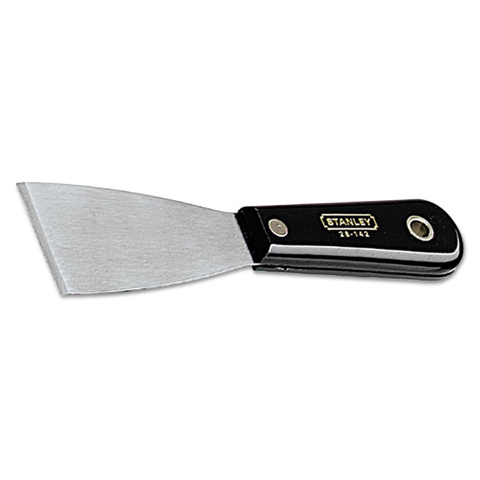 Stiff Nylon Handle Putty Knife, 2in. Steel blade hardened, tempered and polished. Full tang blade permanently fastened to shatter-resistant nylon handle. Blade Width: 2"; Blade Material: Steel; Handle Material: Nylon; Handle Color: Black.