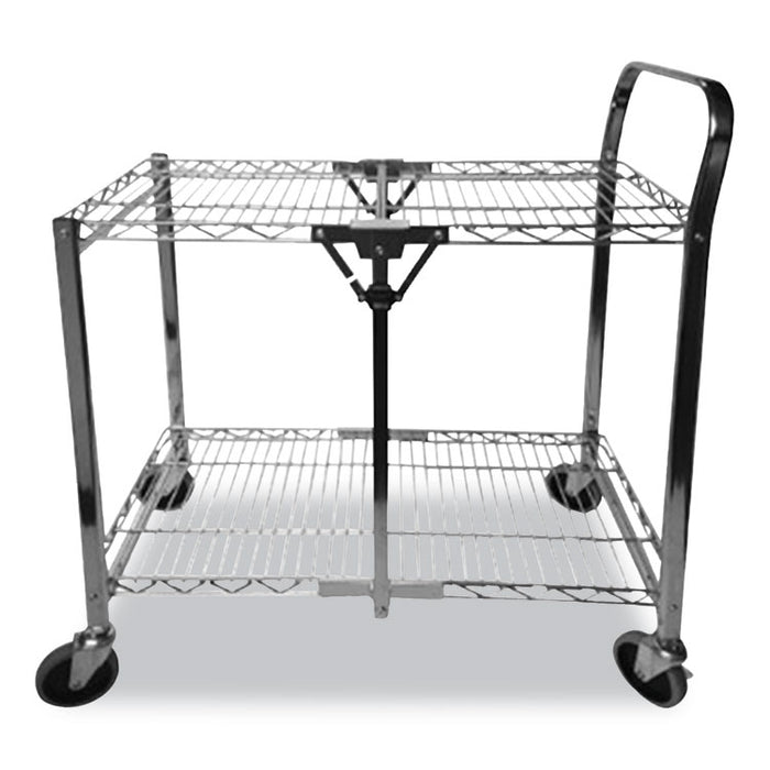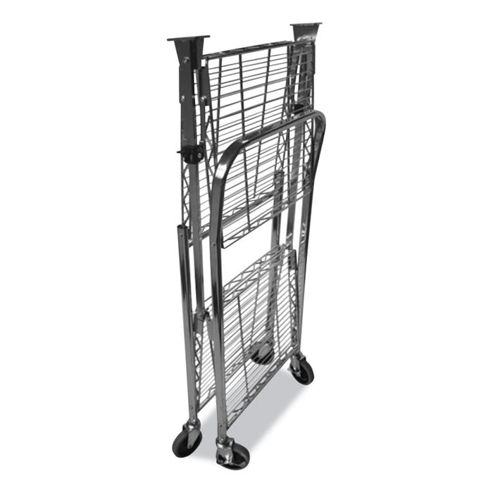 Stowaway Folding Carts, 2 Shelves, 29.63w x 37.25d x 18h, Chrome, 250 lb Capacity