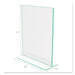 Superior Image Premium Green Edge Sign Holders, 8 1/2 x 11 Insert, Clear/Green. Green-tinted polished rounded edges provide a glass-look appearance and safe touch. Great for high-end signage, awards or certificates. Personalize and print signs from your own printer using deflecto®'s free online SignCreator™ software. Frame Color: Clear; Size: 8 1/2" x 3 13/16" x 11 1/4"; Message(s): Customizable; Insert Size: 8 1/2 x 11.
