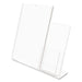 Superior Image Slanted Sign Holder with Side Pocket, 13.5w x 4.25d x 10.88h, Clear. This durable, thick paneled sign holder features rounded edges and is sealed on three sides to keep your sign clean, protected and secure. Slanted face for easier readability. Create your own signs with deflecto®'s free online SignCreator™ software. SignCreator™ includes hundreds of templates you can customize to create professional signs and print on your own printer. With Side Leaflet Pocket—Holds up to 1" capacity. Color: Clear; Color Family: Clear; Overall Width: 13.5"; Overall Depth: 4.25".