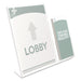 Superior Image Slanted Sign Holder with Side Pocket, 13.5w x 4.25d x 10.88h, Clear