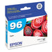 T096220 (96) Ink, 430 Page-Yield, Cyan. Innovative, ultra-vivid colors produce gallery exhibition quality prints. Fade-resistant ink ensures superior print life. Cartridge provides reliable, clog-free ink delivery and even ink distribution. Delivers smooth color transitions with improved highlight and shadow details. Quick-drying ink generates smear-free documents and prints. Device Types: Inkjet Printer; Color(s): Cyan; Page-Yield: 430; Supply Type: Ink.