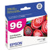 T096320 (96) Ink, 430 Page-Yield, Magenta. Innovative, ultra-vivid colors produce gallery exhibition quality prints. Fade-resistant ink ensures superior print life. Cartridge provides reliable, clog-free ink delivery and even ink distribution. Delivers smooth color transitions with improved highlight and shadow details. Quick-drying ink generates smear-free documents and prints. Device Types: Inkjet Printer; Color(s): Magenta; Page-Yield: 430; Supply Type: Ink.