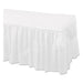 Tableskirts, Plastic, White, 29" x 14 ft, 6/Carton. Accent any size tablecover with an attractive plastic tableskirt. Skirt is easy to apply, with a simple adhesive strip, and easy to remove. Festive skirts drape perfectly every time. The individual inner packaging allows for a clean and fresh tableskirt every time. Shape: Skirting; Material(s): Plastic; Color(s): White; Width: 29".