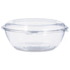 Tamper-Resistant, Tamper-Evident Bowls with Dome Lid, 64 oz, 8.9" Diameter x 4"h, Clear, Plastic, 100/CartonTamperAlert™ hinge protrudes outward when torn, alerting the customer that the container has been opened.