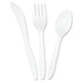 Three-Piece Cutlery Kit, Fork/Knife/Teaspoon, Polypropylene, White, 250/Carton