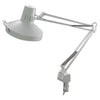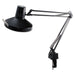 Three-Way Incandescent/Fluorescent Clamp-On Lamp, 9.38"w x 9.38"d x 44.5"h, Black. Three-way switch allows use of fluorescent only, compact fluorescent only or both at the same time. Accepts 19W CFL and 25W circline fluorescent bulbs (included). Swing arm pivots to allow for reach of 40 inches; ideal for a variety of tasks. Lamp is connected to a clamp that attaches to surfaces up to 2 inches thick. Base Color: Black; Plug Type: 3 Prong; Height: 44.5"; Width: 9.38".