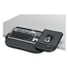 Tilt 'n Slide Keyboard Manager, 19.5w x 11.88d, Black. Features strong brackets that easily attach to desktop edge up to 1-3/4” thick without tools, allowing platform to effortlessly tilt and slide. Extended knee clearance keeps you comfortable while typing and mousing. Attaches to desktops up to 1-3/4” thick without surface damage. Single lever easily adjusts tilt (flat to 30°) and slide (4-5/8” travel distance). Unique textured surface keeps mouse from sliding off mousing platform. Ultra soft memory foam wrist support with Microban® antimicrobial product protection keeps product cleaner. Color: Black; Workstation Type: Straight; Height (+/- Desktop): +5 1/16"/-2 1/4"; Keyboard Tray Dimensions (W x D): 19.5" x 11.88".