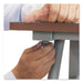 Trento Line Rectangular Desk, 47.25w x 23.63d x 29.5h, Mocha/Gray. Scratch- and stain-resistant woodgrain laminate with durable edge and strong powder coated steel frame. Adjustable leveling glides for stability. Quick and easy assembly in minutes with no tools required. Configure multiple desks to perfectly fit your space. Includes metal modesty panels. Pedestals fit under desk. Color: Mocha/Gray; Color Family: Brown; Top Shape: Rectangular; Top Material: Woodgrain Laminate.