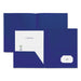 Two-Pocket Plastic Folders, 100-Sheet Capacity, 11 x 8.5, Navy Blue, 10/Pack. Two pocket heavyweight poly folders. Plastic material is highly durable for heavy usage and resists tearing compared to paper equivalents. Ideal for standard letter size paper, presentations, and booklets, keeping everything neatly organized. Die-cut business card holder keeps contact information easily visible. Generous capacity of up to 100 sheets per folder. Front Cover Color(s): Navy Blue; Color Family: Blue; Back Cover Color(s): Navy Blue; Sheet Size: 11 x 8.5.