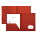 Two-Pocket Plastic Folders, 100-Sheet Capacity, 11 x 8.5, Red, 10/Pack. Two pocket heavyweight poly folders. Plastic material is highly durable for heavy usage and resists tearing compared to paper equivalents. Ideal for standard letter size paper, presentations, and booklets, keeping everything neatly organized. Die-cut business card holder keeps contact information easily visible. Generous capacity of up to 100 sheets per folder. Front Cover Color(s): Red; Color Family: Red; Back Cover Color(s): Red; Sheet Size: 11 x 8.5.