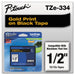 TZe Standard Adhesive Laminated Labeling Tape, 0.47" x 26.2 ft, Gold on Black