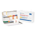 - (1) Fabric Bandages, 1" x 3", 16ct, (1) 1 First Aid Tape, 1 CPR Mask, 1 Scissors, (1) Triple Antibiotic Ointment Packets, 12ct, (1) BZK Antiseptic Towelettes, 10ct, (1) Burn Dressing, 4" x 4", (1) First Aid/Burn Cream Packets, 0.9g, 12ct, (1) Cold Compress, 4" x 5", (1) 1 Eyewash, 1oz, with 2 Eye Pads and 2 Strips, (1) Hand Sanitizer Packets, 0.9g, 10ct, (1) Nitrile Exam Gloves, 4 ct., (1) Conforming Gauze Roll, 2", 2ct, (1) Gauze Dressing Pads, 3" x 3", 4ct, (1) Trauma Pad, 5" x 9", 1/box, (1) Triangular Sling/Bandage, 40" x 40" x 56", (1) First Aid Guide, (1) Knuckle & Fingertip Fabric Adhesive Bandages, 9ct, (1) Hydrocortizone Anti-Itch Cream Packets, 12ct, (1) Sting Relief Wipes, 10ct, (1) Hema-seal 4" Major wound compress, (1) Body Fluid Spill Clean-Up Pack (20 pcs), (1) BBP Personal Protection Pack (7 pcs)