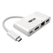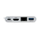 USB 3.1 Gen 1 USB-C to HDMI Adapter, USB-A/USB-C PD Charging/Gigabit Ethernet. Expands the potential of your tablet, laptop, Chromebook, MacBook, smartphone or PC’s USB-C or Thunderbolt 3 port. It’s ideal for transmitting video to a large display and powering and charging a PD Charging-compliant mobile device—all at the same time. With a source device that also supports USB DisplayPort Alternate Mode, you can extend video from your primary display to another, duplicate the same video on both displays, or change the second display to your primary. Requires no software, drivers or external power. Connect the reversible USB-C plug to your source device’s USB-C or Thunderbolt 3 port. The fumble-free USB-C plug connects in either direction to ensure fast, easy connection every time. The USB-C Power Delivery (PD) port provides power and charging to the PD Charging-compliant device (such as a MacBook or Chromebook) it is connected to. Connect the device’s AC wall charger to the USB-C PD port, which supports power input up to 20V/3A (60W). Cable Type: USB-C to HDMI Adapter; Connector/Port/Interface: HDMI (Female); RJ45 (Female); USB 3.0 A (Female); USB C (Female); USB C (Male); For Device Type: Laptops; Mobile Devices; Connects Devices (From/To): Cable to Ethernet Port; Charger to Device; Device to Monitors.