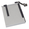 Vantage Guillotine Paper Trimmer/Cutter, 15 Sheets, 15" Cut Length, Metal Base, 12.25 x 15.75. Designed to hold up to rigorous activity, day in and day out. The machine-ground, lever-style blade is sharp and accurate enough that it can remove even the tiniest sliver of paper from your work. For safety, a spring-action handle prevents the blade from falling down unexpectedly. Lightweight and marked with guides, Vantage® trimmers offer safety and convenience, while giving you the accuracy you require. To ensure an even cut, each trimmer features an automatic clamp that provides firm, even pressure, preventing paper from shifting. To protect the blade and keep fingers safe, the handle can be locked in the down position. For durability, the sturdy metal base provides a solid foundation. For measuring, the base contains carefully screened guides and an adjustable backstop -- which is the easiest way to ensure accuracy during repetitive cuts. And for portability, it's designed to be light enough to take anywhere. Trimmer Board Type: Guillotine; Sheet Capacity: 15; Cut Length: 15"; Blade Material: Metal.