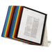 VARIO Reference Desktop System, 20 Panels, Assorted Borders and Panels. Metal desk system designed especially for facilities. Glare-free, polypropylene sleeves with rugged frames for heavy use. Letter-size inserts easily slide into sleeves. Two viewing angles to choose from - 30 degrees or 60 degrees. Includes metal desk stand, metal sleeve bracket, sleeves and snap-on tabs. Expandable up to 60 views by adding item Durable 535900, sold separately. Assorted Panels—Four each: black, blue, green, red and yellow. Includes snap-on tabs. Material(s): Metal; Sheet Capacity: 40; Number of Compartments: 20; Compartment Size: Letter.