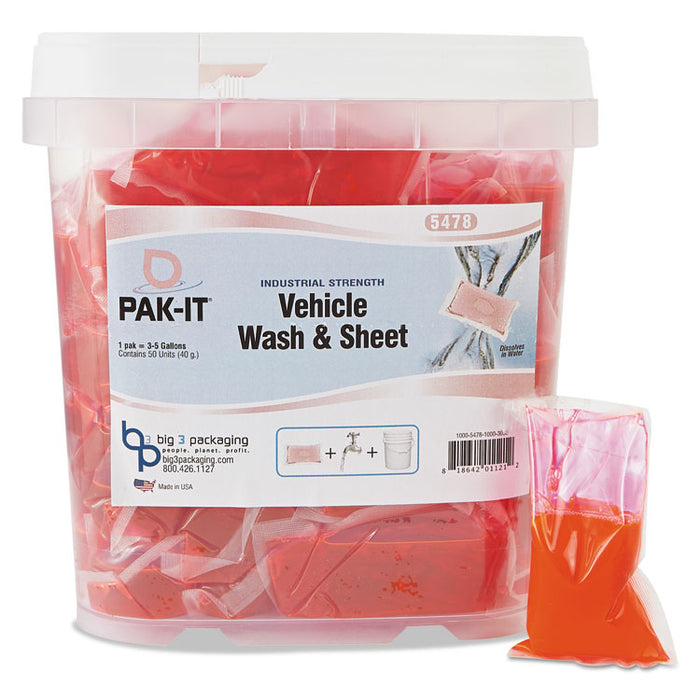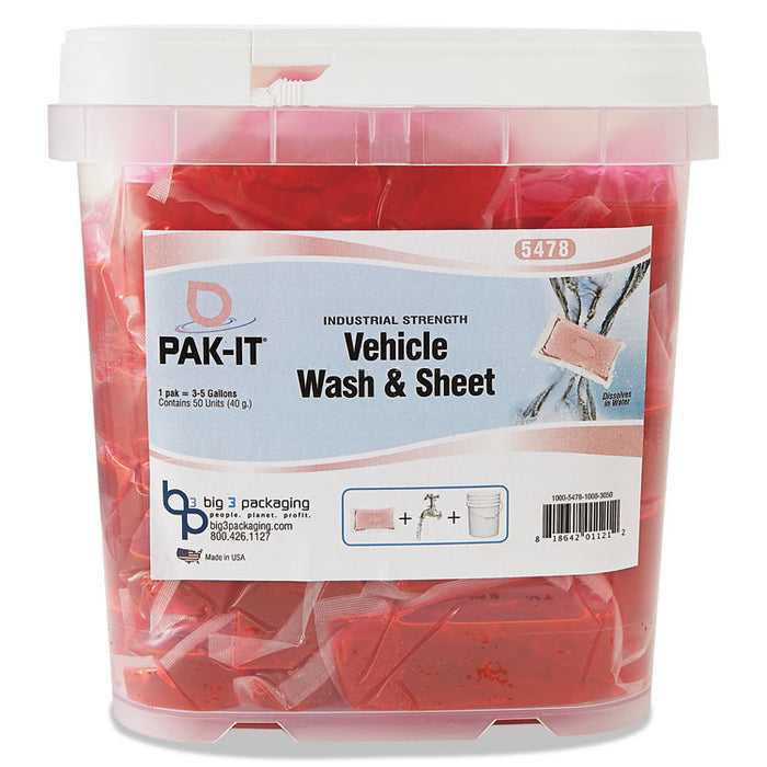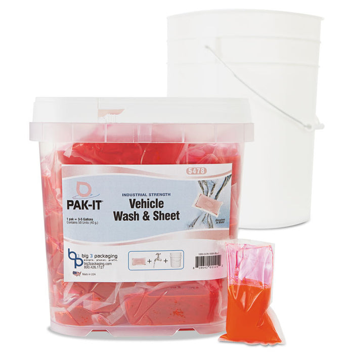 - Pre-measured portion PAK-It®s each create up to five gallons of Vehicle Wash & Sheet for exterior vehicle washing, requiring no drying!
