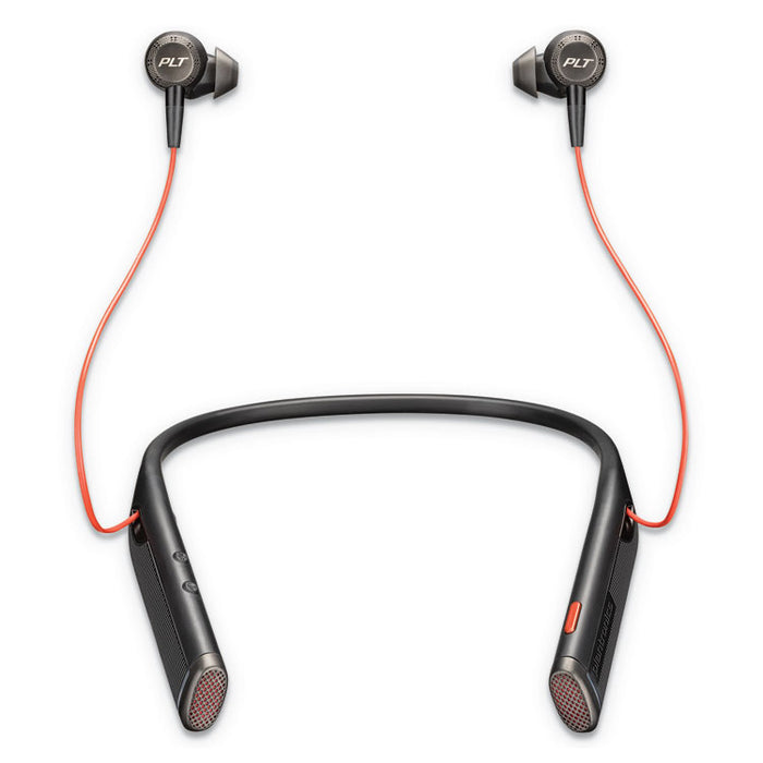 Voyager 6200 UC, Binaural, Neckband Headset. A Bluetooth® neckband headset with earbuds that is indispensable for executives and managers who need exceptional, professional-grade audio. Four omnidirectional microphones and active-noise canceling ensure users will hear and be heard with complete clarity. Voyager 6200 UC can pair with up to eight devices and connect to two simultaneously, helping professionals to stay in touch wherever and whenever. Headset Type: Binaural; Headset Style: Neckband; Earpiece Type: Earbuds; Earpiece Material: Silicon.Comfortable Bluetooth® neckband headset with earbuds with no boom.Works seamlessly across desktops, laptops, mobile phones, tablets and Bluetooth®-enabled desk phones.You can count on Voyager 6200 UC for outstanding audio every time, everywhere.Professional-grade audio with enhanced Digital Signal Processing.On-demand active noise canceling.Built-in versatility in a neckband with earbuds.Incoming call alert.Dynamic mute alert.Class 1 Bluetooth with 98 feet/30 meters wireless range.Customizable call and media options.