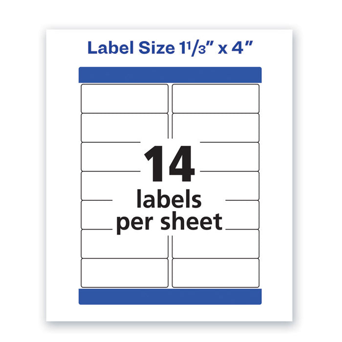 Waterproof Address Labels with TrueBlock and Sure Feed, Laser Printers, 1.33 x 4, White, 14/Sheet, 50 Sheets/Pack