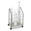 Wire Roll/Files, 20 Compartments, 18w x 12.75d x 24.5h, Gray. Tubular steel frame with chrome-plated grids. Square tube design provides easy access and removal of materials. Mobile on twin wheel casters (two locking). Color: Gray; Compartment Quantity: 20; Compartment Size: 2.75 x 2.75; Overall Width: 18".