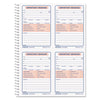 Wirebound Message Books, 5 x 3 3/8, Two-Part Carbonless, 400 Sets/Book. Black-print carbonless duplicates, with stop card to prevent write-through. Reverse side ruled for more note space. Book Size 11 x 5 1/2—Value Pack-Stock Up and Save! Form Size: 5 x 3.38; Forms Per Page: 4; Form Quantity: 400; Sheet Size: 11 x 5.5.