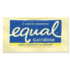 Zero Calorie Sweetener, 0.035 oz Packets, 500/Box. A single packet of Equal® sweetens the same as two teaspoons of sugar. It also dissolves quickly in hot or cold beverages, making it perfect for everything from coffee to lemonade. The sweetening ingredient in Equal® is called aspartame, a zero calorie mixture of two natural amino acids found in meat, milk, fruit and vegetables. Packing Type: Packet; Premeasured: Yes; Capacity (Weight): 0.04 oz.